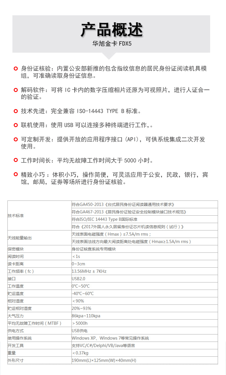 (*由于產品升級或其他原因,華旭身份證閱讀器產品實際參數(shù)有可能變更,以實際產品為準。本文中的所有陳述、信息和建議也不構成任何明示或暗示的擔保)