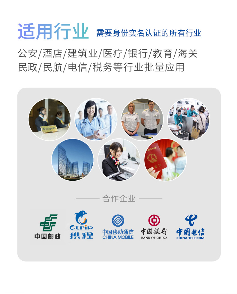1, 金融系統(tǒng):卡戶(hù),銷(xiāo)戶(hù)業(yè)務(wù)辦理,客戶(hù)身份核驗(yàn)。 2, 公安系統(tǒng):身份證申/換領(lǐng),變更住址,人口管理,出入境等。