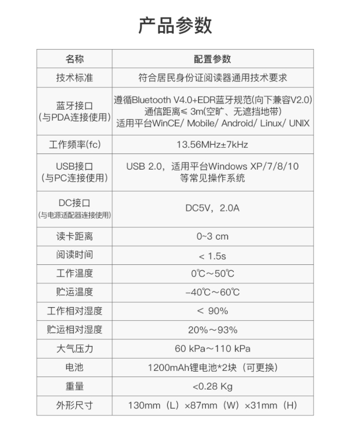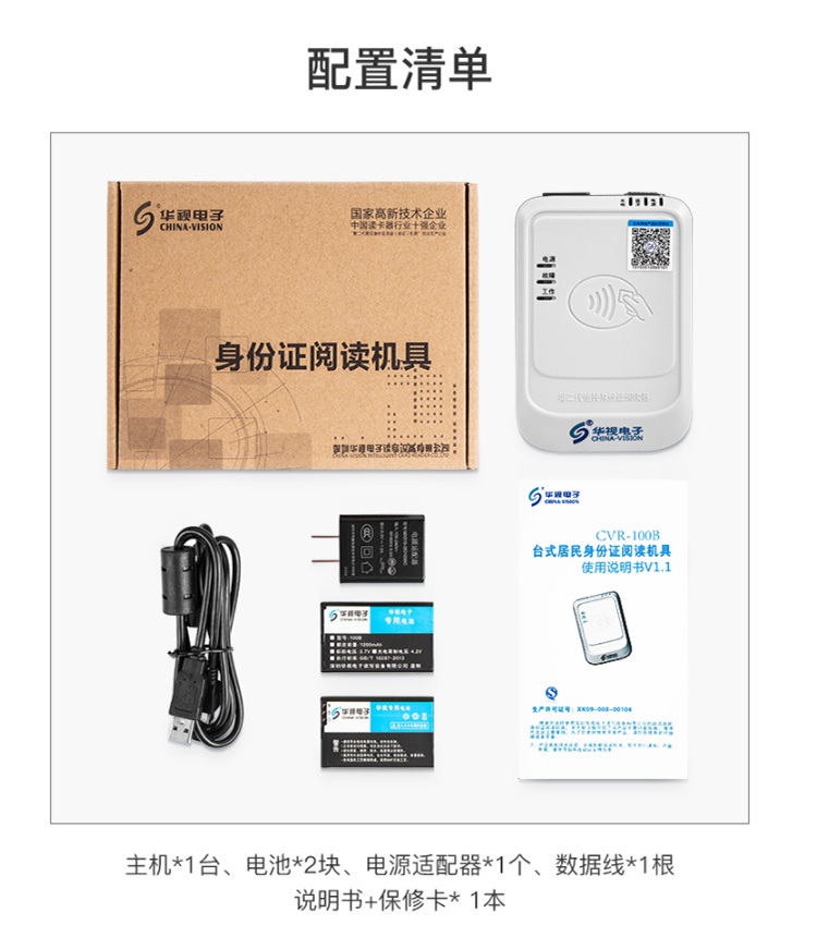 (*由于產(chǎn)品升級或其他原因,華視CVR-100B藍牙身份證讀卡器產(chǎn)品實際參數(shù)有可能變更,以實際產(chǎn)品為準(zhǔn)。本文中的所有陳述、信息和建議也不構(gòu)成任何明示或暗示的擔(dān)保)