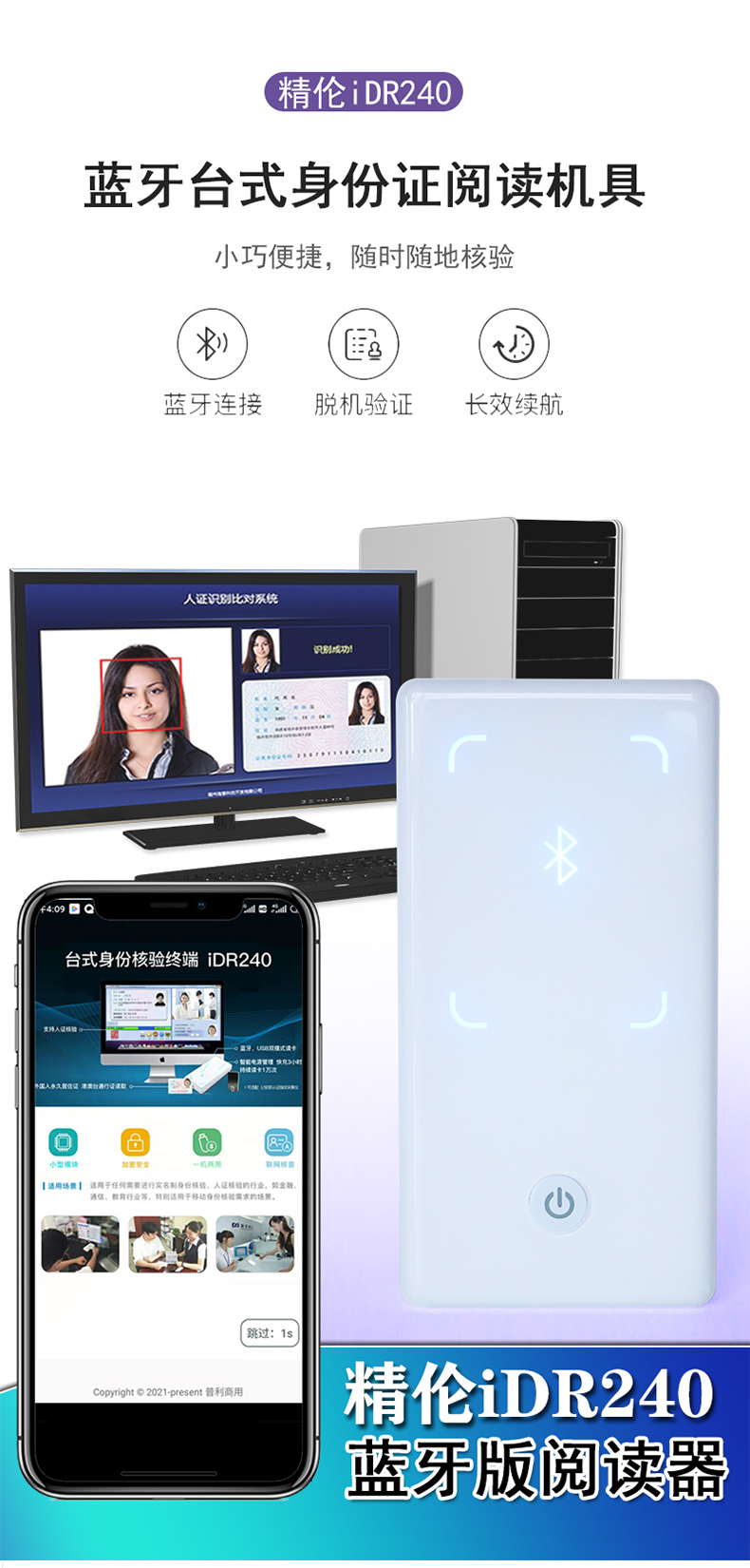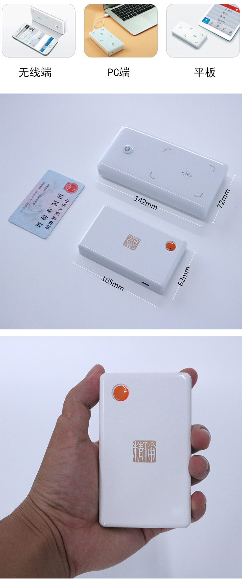 精倫idr242藍牙身份證閱讀器主要用于二次開發,可以鏈接手機,平板,方便快捷