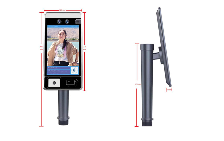 明創EST-100CW 健康核驗一體機·數字哨兵,采用瑞芯 微 RK3288 高性能硬件平臺,搭載工業級雙目攝像 頭和人臉活體識別技術,以及紅外人體測溫模塊, 是一款高性能、高可靠性的產品。支持 1:1 和 1: N 人臉比對和檢索,支持口罩識別,支持人體溫度 檢測,可高溫預警,并支持身份證讀卡器、指紋儀 等多種外設擴展,可應用于門禁考勤,實現人員的 安全、高效的進出控制