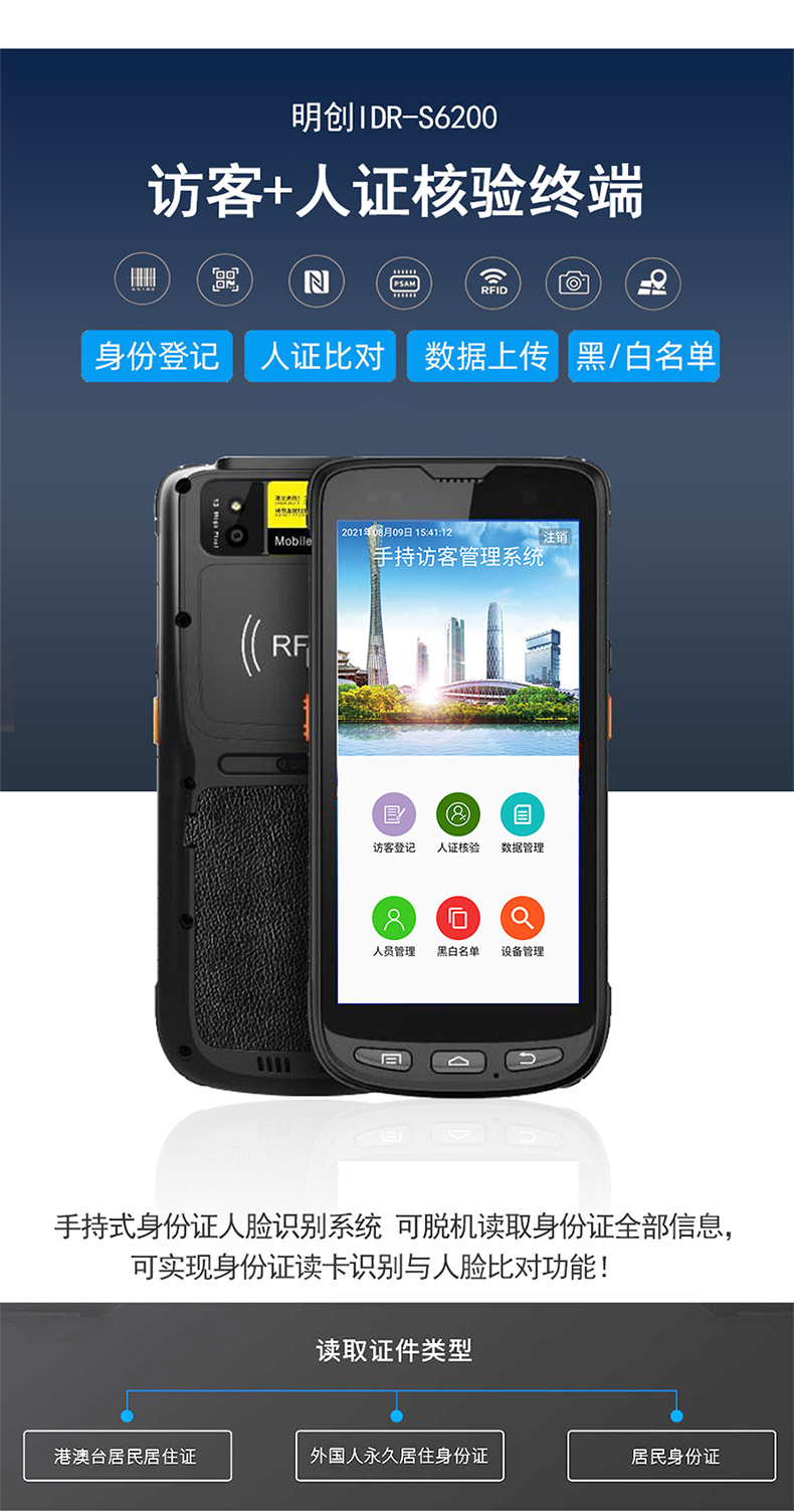 【可用于考試、工地、煤礦等行業(yè)】明創(chuàng)IDR-S6200人證比對 人證識別 人證核驗一體機 手持平板式 人臉與身份證比對 人證合一識別系統(tǒng) 實名制 人臉與身份證比對